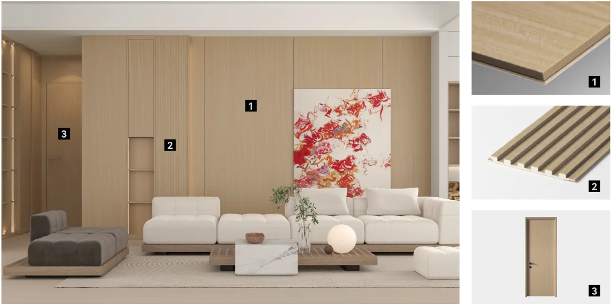 The space lavout is mainly functional and practical, which well interprets the modern traditional minimalist styleso that the home space is as clean and harmonious as possible, highlighting the natural, fashionable and nobleatmosphere. Bailiaxiang in creating the space of log wind, emphasis on the fluency of space, fully tap the naturabeauty of raw materials, so that the entire decoration desian blends the functionality of the space, beauty anotaste.